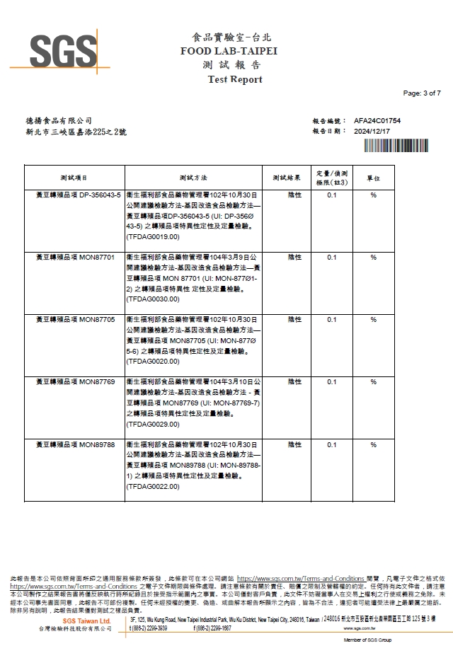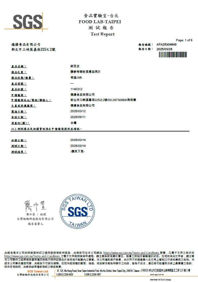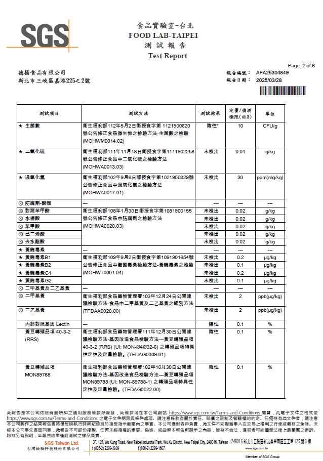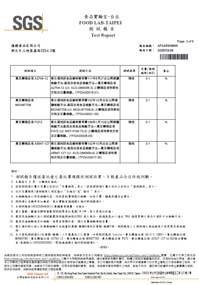 德揚食品所有商品堅持使用美加進口食品級非基因改造黃豆製成,不添加防腐劑,不使用漂白劑及色素,並使用自動化設備提高產能、穩定產品品質,讓消費者食用安心。