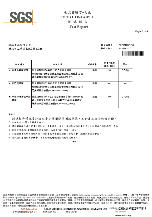 3. 如期提供符合顧客品質需求的產品及確保食品安全